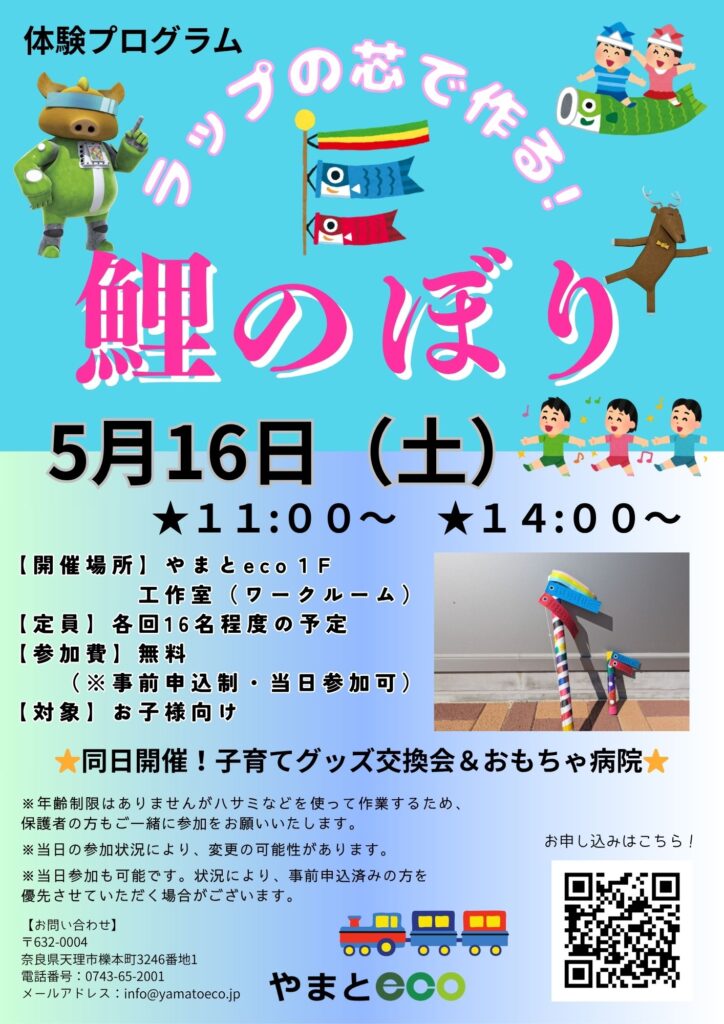 ラップの芯で作る🎏鯉のぼり 5月16日(土)開催!
